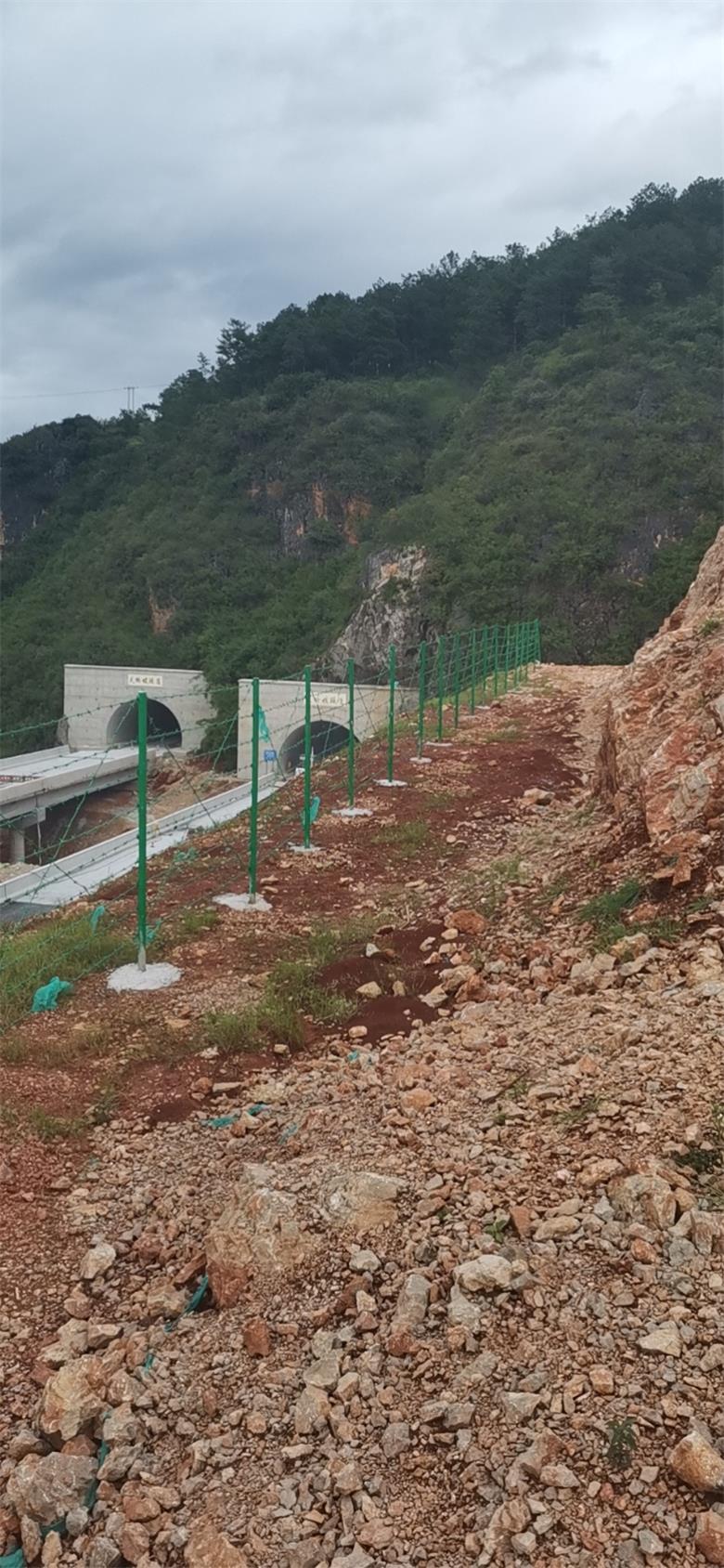 廣西南寧刺繩隔離柵主要由優質的低碳鋼絲、不銹鋼絲、包塑絲、鍍鋅絲等制成。這些材料具有高強度、耐腐蝕性等特點,能夠保證隔離柵在不同環境下長期使用。通過刺繩機械將帶刺的鐵絲纏繞在主絲(股絲)上面,經過正擰、反擰、正反擰等多種編織工藝而成。部分刺繩隔離柵還會搭配刺鐵絲立柱,如圓管、U 型鋼方管以及 GRC 復合立柱等,以增強其穩定性和支撐力。